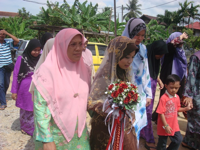 Pengantin disambut oleh Wan Fatimah (AJK Sambutan)